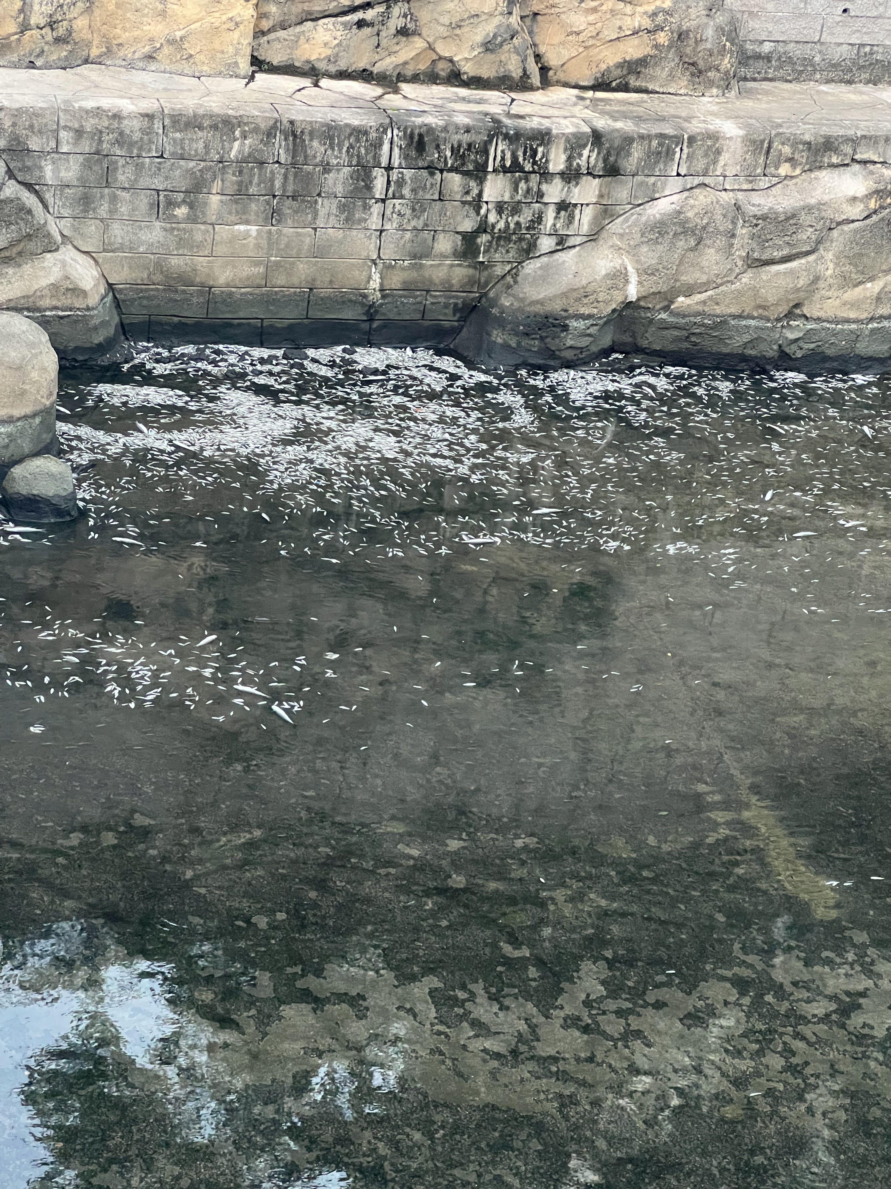 啟德河驚現大量「浮屍」!多名啟德居民拍下相片向東張西望報料,相片可見,啟德廣場公園附近的啟德河簡直屍橫遍野,有大量的死魚和正在掙扎反肚的魚,場面很可怕!