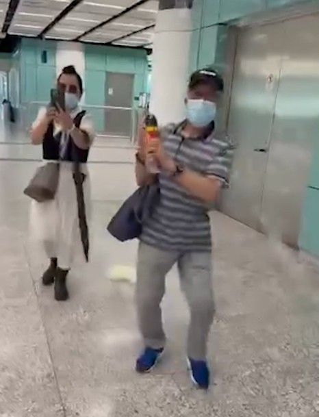期間,拍片人曾經向職員求助,說對方不知從袋中取出什麼圖謀不軌,之後說:「係咪噴啊?」
