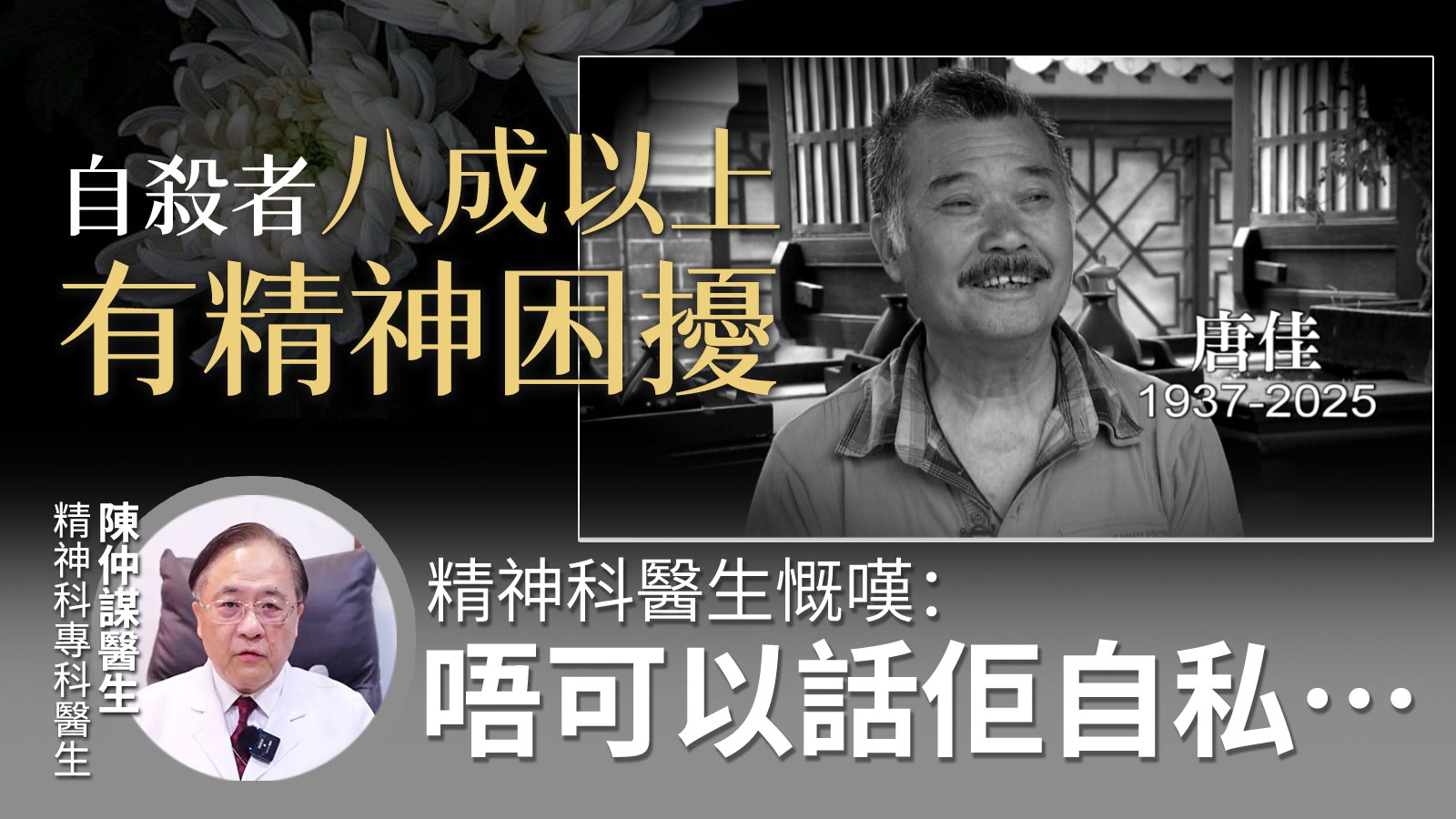 「東張+」專訪|自殺者八成以上有精神困擾 精神科醫生慨嘆:唔可以話佢自私