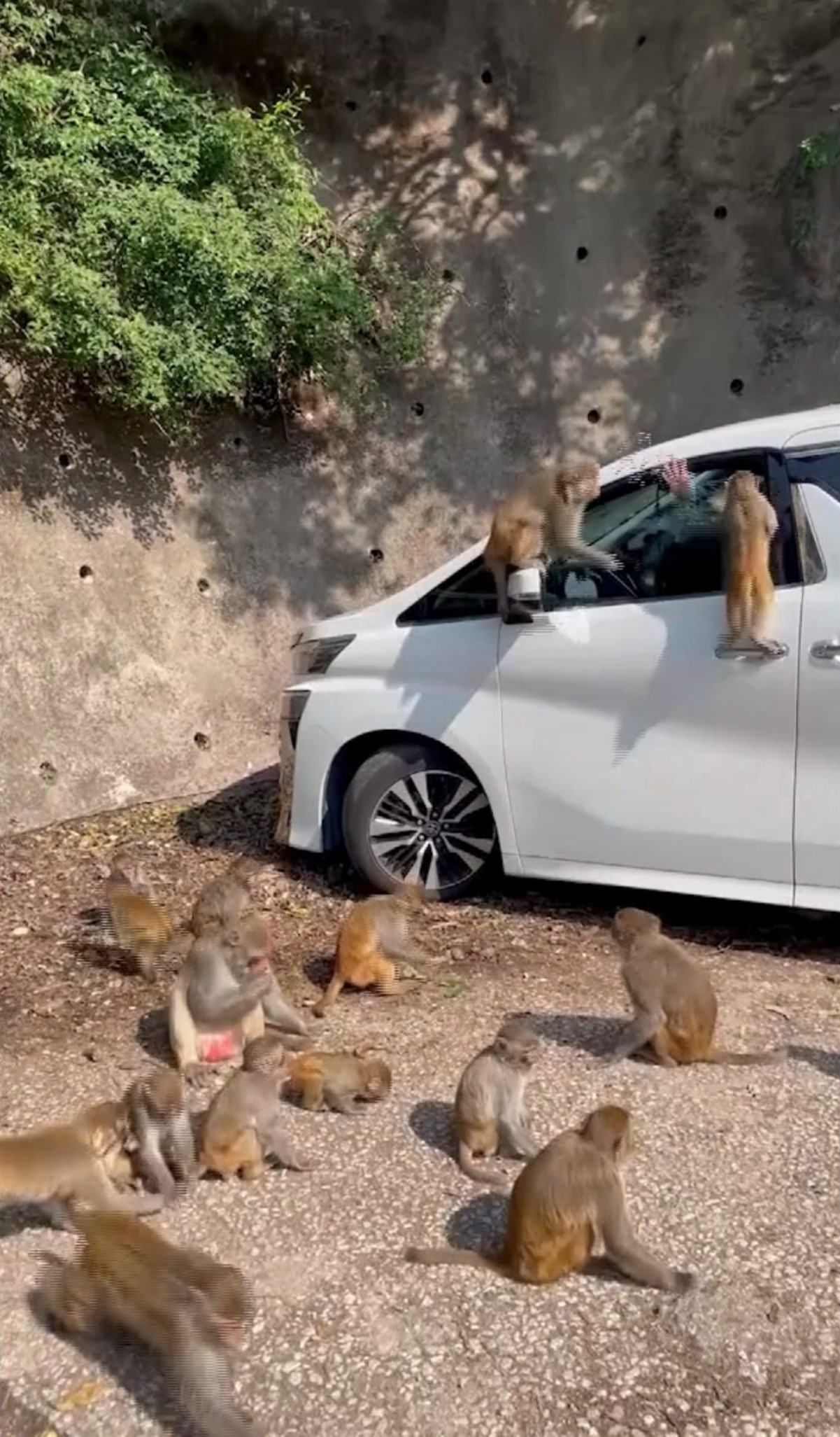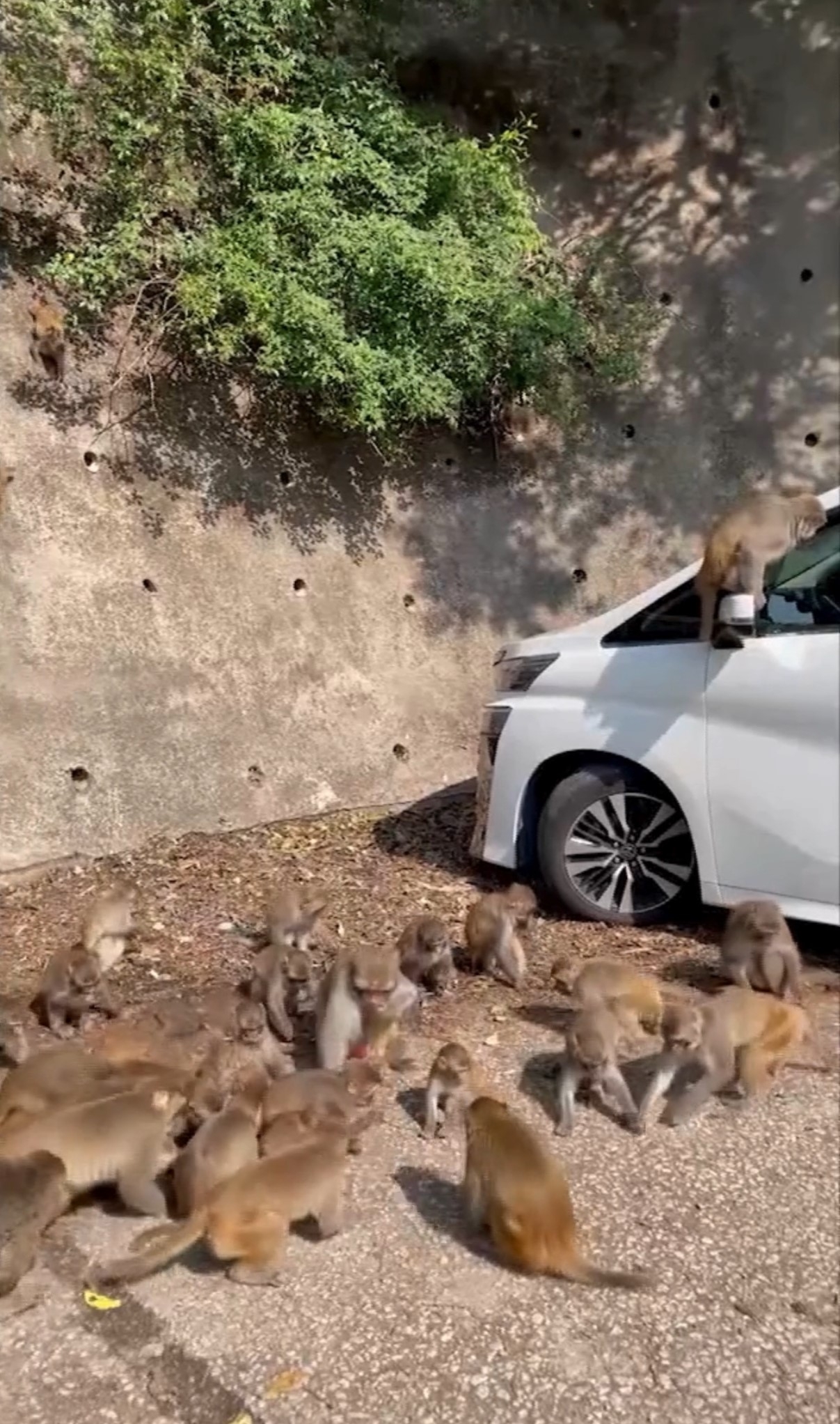 鐄先生的述表示,該家人都在一輛白色七人車內,其中一名小朋友於車窗的罅隙中,拋出堅果類食物,引來大量猴子進食。影片中可以見到,現場的猴子超過數十隻,構成嚴重環境問題。