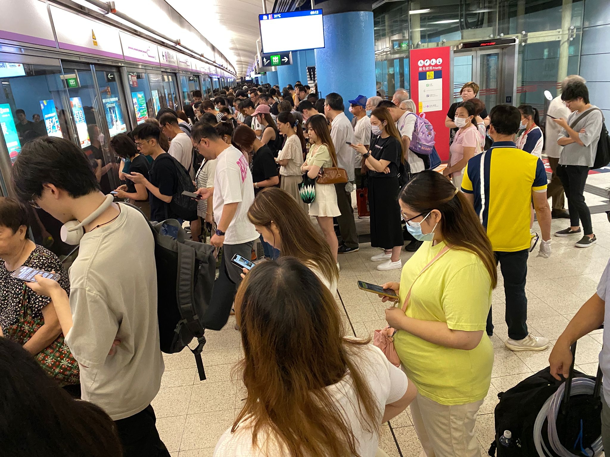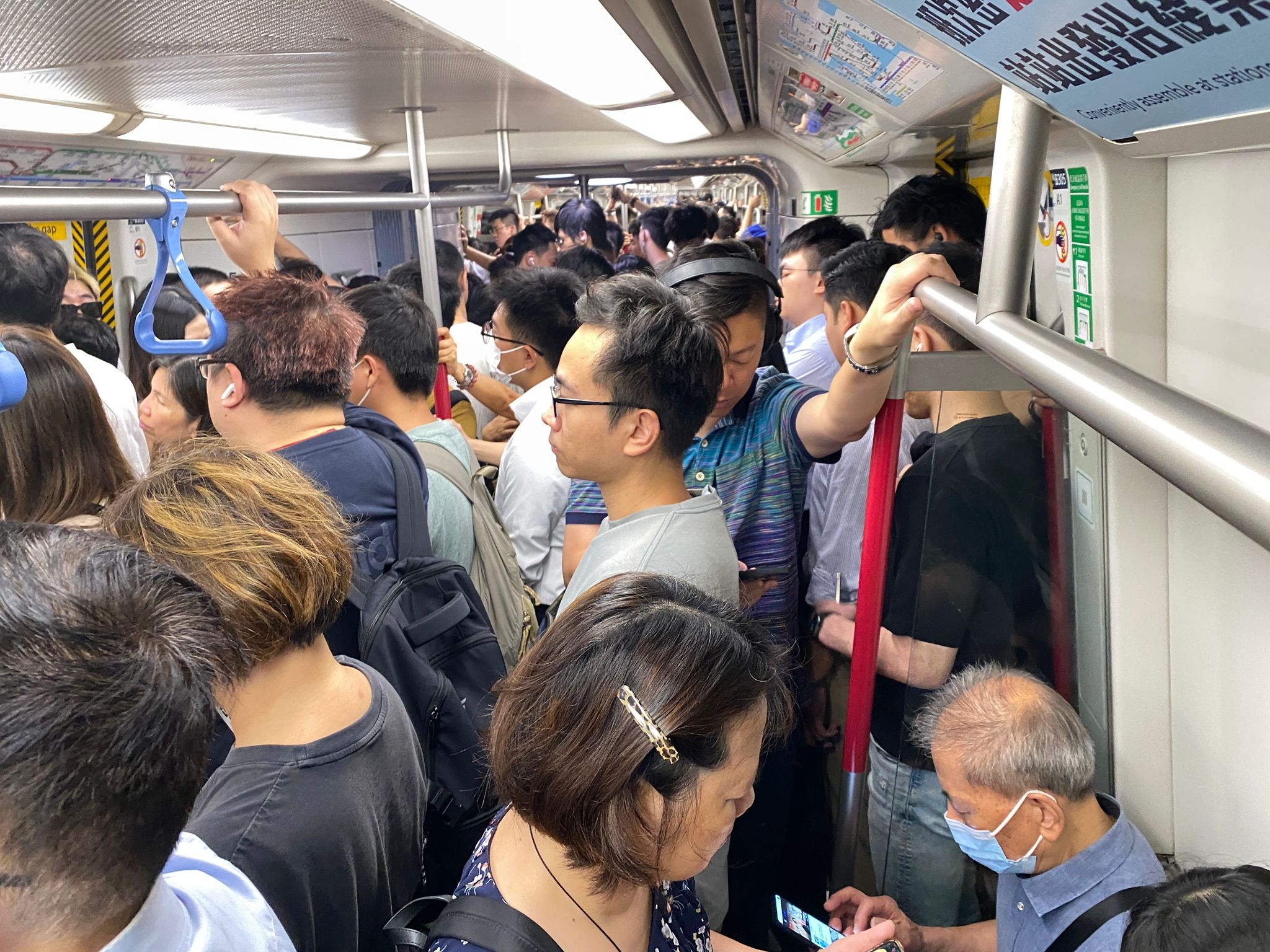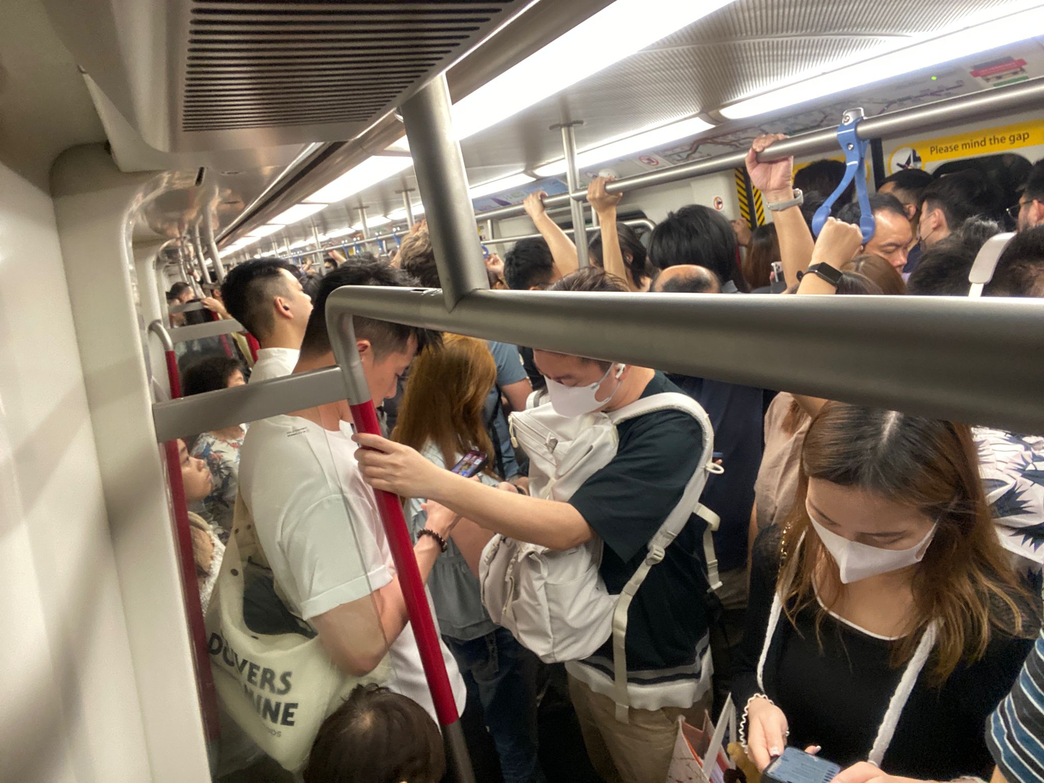 這名觀眾拍下的相片可見,車廂內迫滿乘客,有觀眾更加在這段被困的時間,為相片打上標籤
