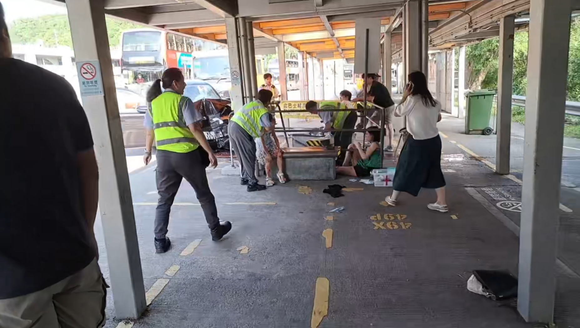 救護員接報趕至即場為傷者包紮,意外中6人受傷,包括一名年幼的女童。根據東張西望收到報料人余先生提供的獨家片段可見,該女童當時腳部明顯流血,另外一名女傷者則坐在地上腳部流血待救。