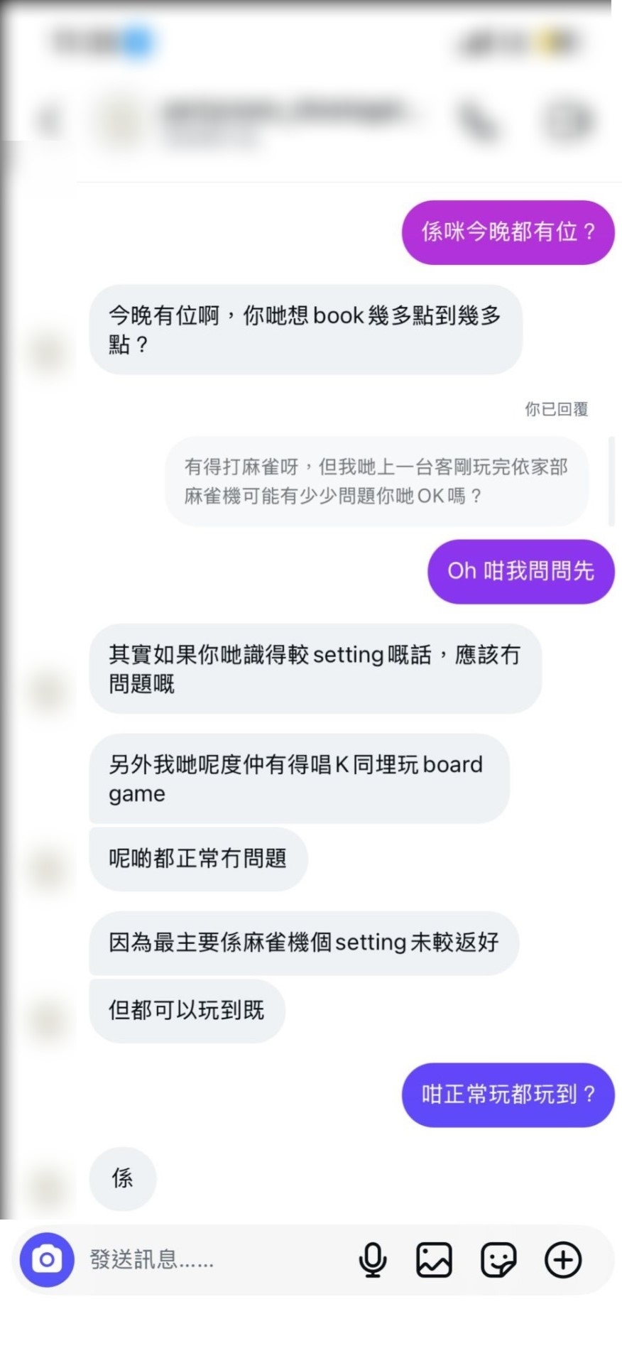 更吊詭的的是,當有新客人向店方查詢Party Room情況時,竟收到店主回覆:「主要係setting 未較好,但都可以玩到。」,更令網民確信麻雀機並未損壞,事件單純是店主「碰瓷」式收費。