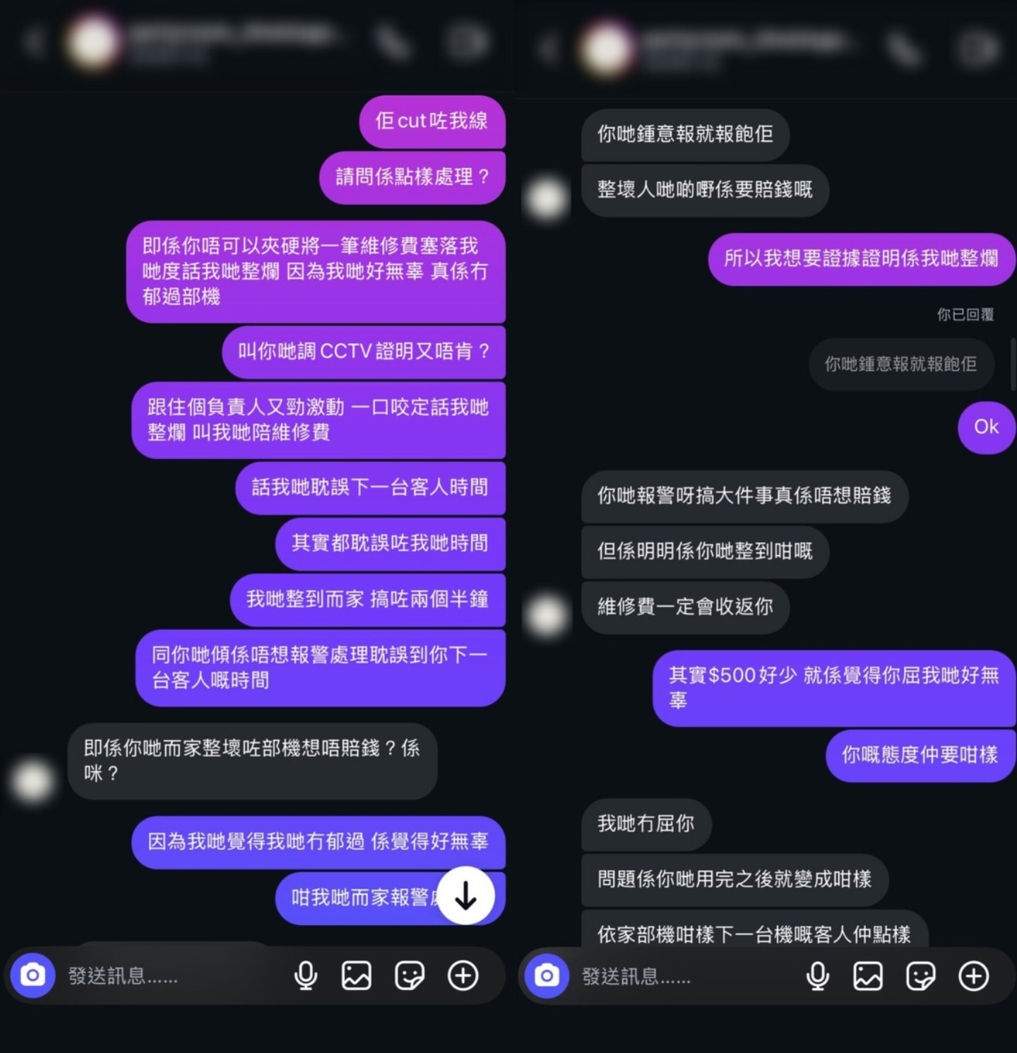 更令事主不滿的是,與負責人通話期間,對方在爭辯過程中單方面掛線,令事主感到「溝通完全失敗」。
