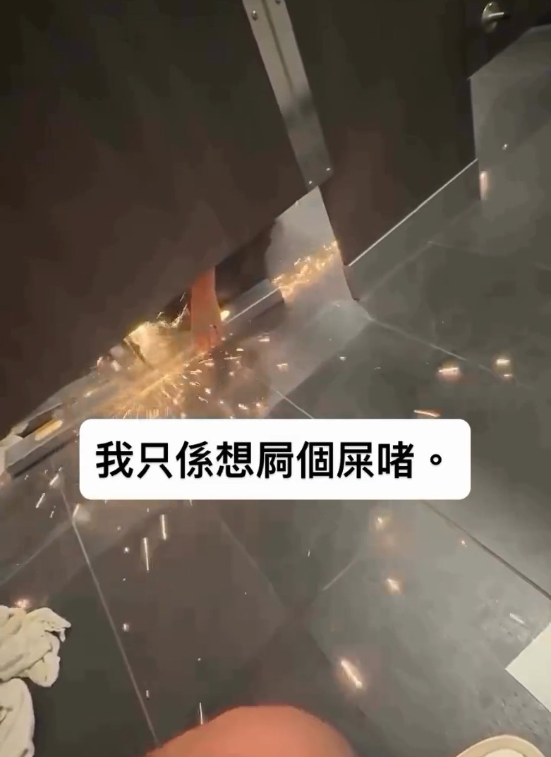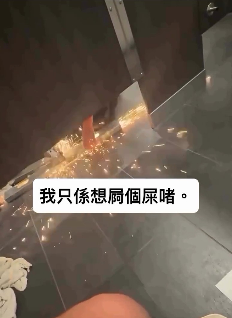 依樓主提供的片段角度,他正在廁格內「辦公」期間,廁格與廁格之間,居然毗鄰有人用電鋸鋸鐵中!不用問,當然是火花四濺,果然十足十在你門前「放煙花」一般!