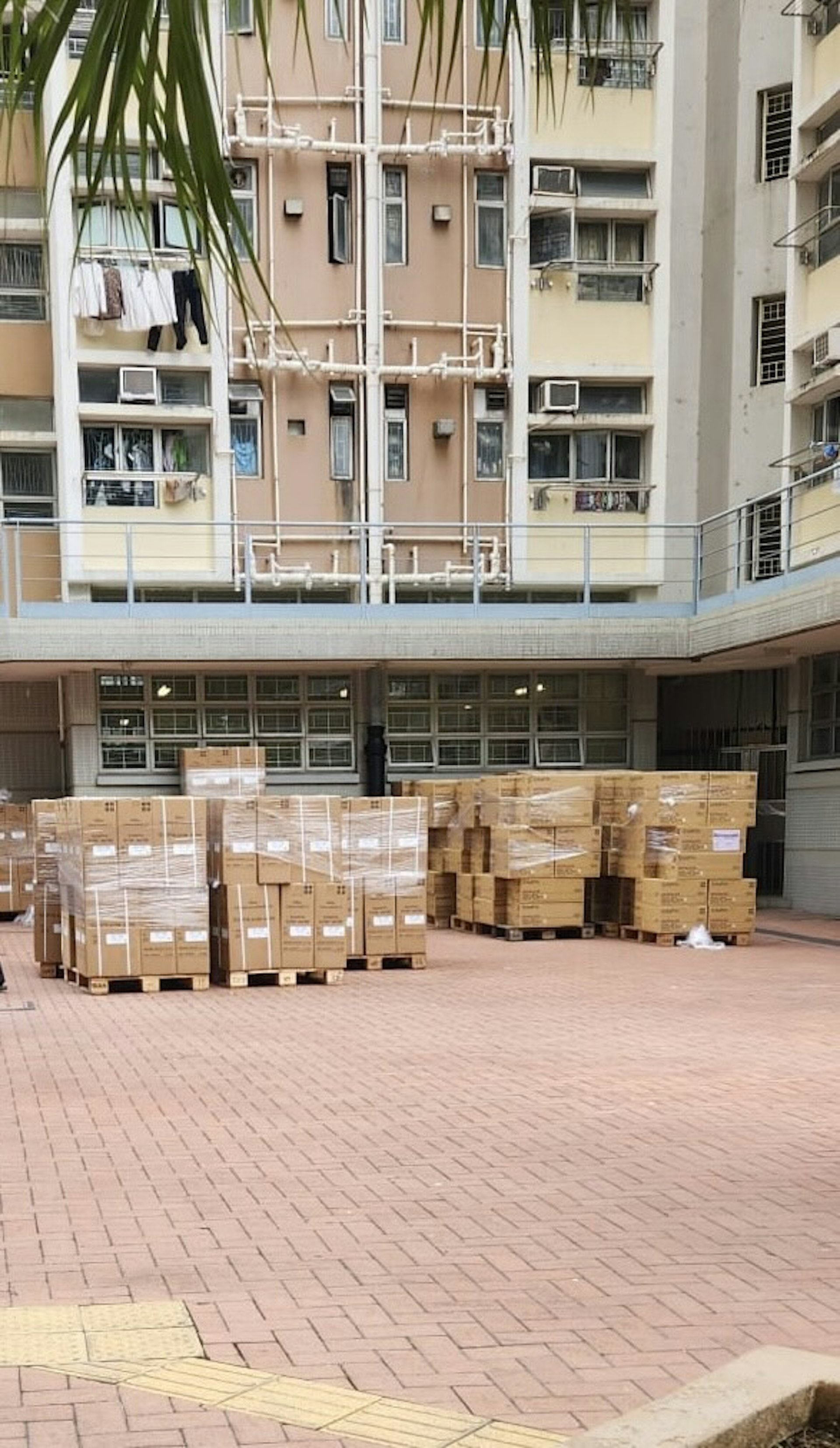 有脆友在社交平台發文,一位寶田邨的居民,拍攝到其屋邨地下中放滿多箱貨物,應該是用作鋪地或裝熱水爐等,脆友更說「代表邨友們觀迎你哋」,心頭一暖。