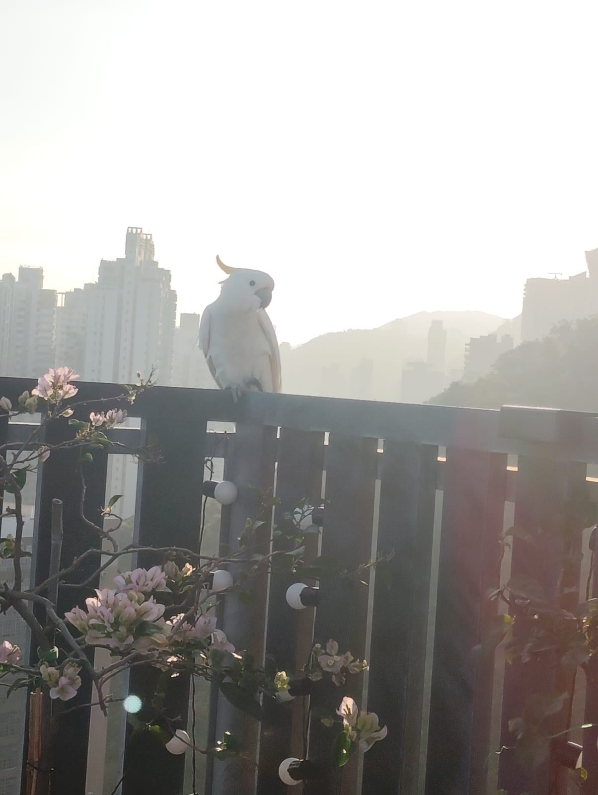 網民geangean在社交平台發帖文,求求各位大神鬥智鬥力,求解圍!「發生一啲好離奇事情,有一日發現天台有隻皇冠白色嘅鸚鵡😅。咁我老公就趕佢走啦,點知第二日佢call 馬!叫咗20幾個兄弟嚟,咬爛晒我屋企天台啲燈飾😮‍💨😮‍💨」。