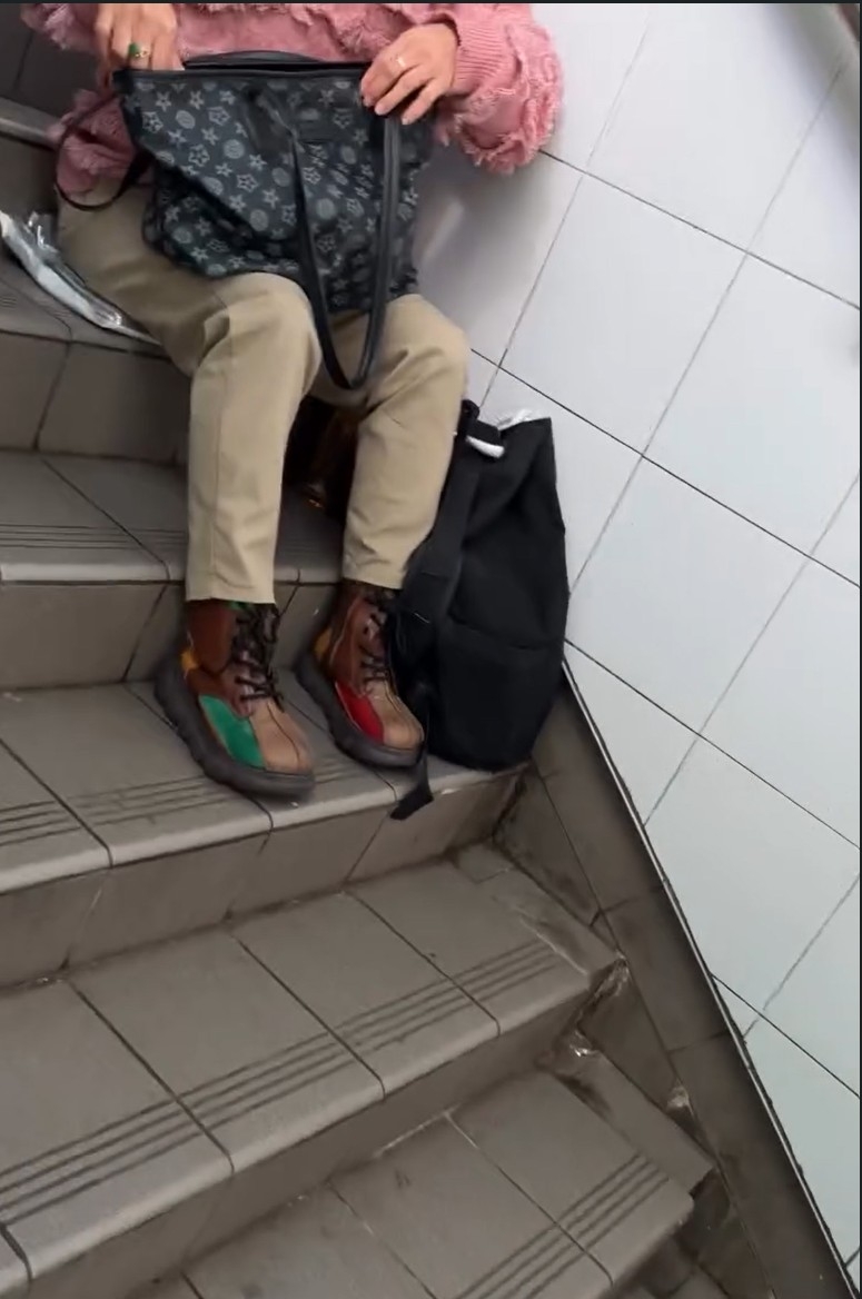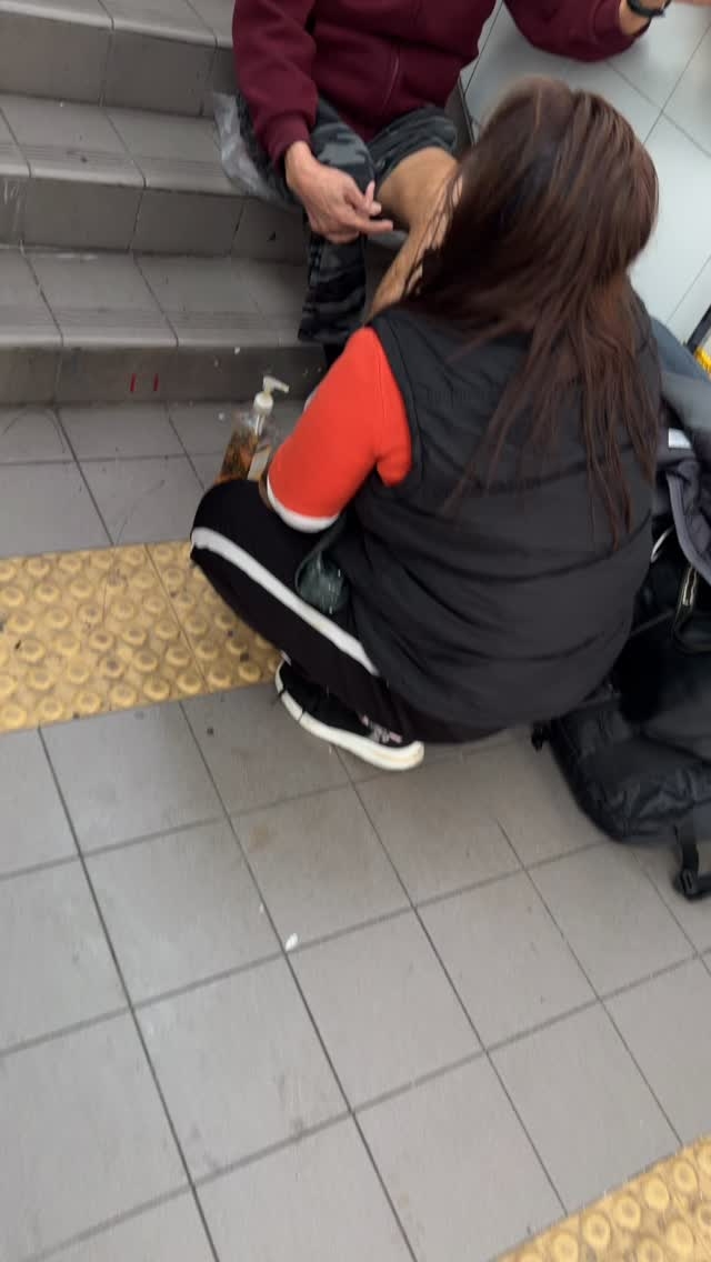 「好耐無過海,中環A出口去IFC條樓梯,上樓梯嘅時候,以為啲阿婆唔舒服喺側邊坐低。但發現對住坐有四組人,再認真望,原來呢班友喺度幫客磨腳皮同埋按腳!嗰個位又大風,行上去每一步,好似食晒啲腳皮嘅feel!」