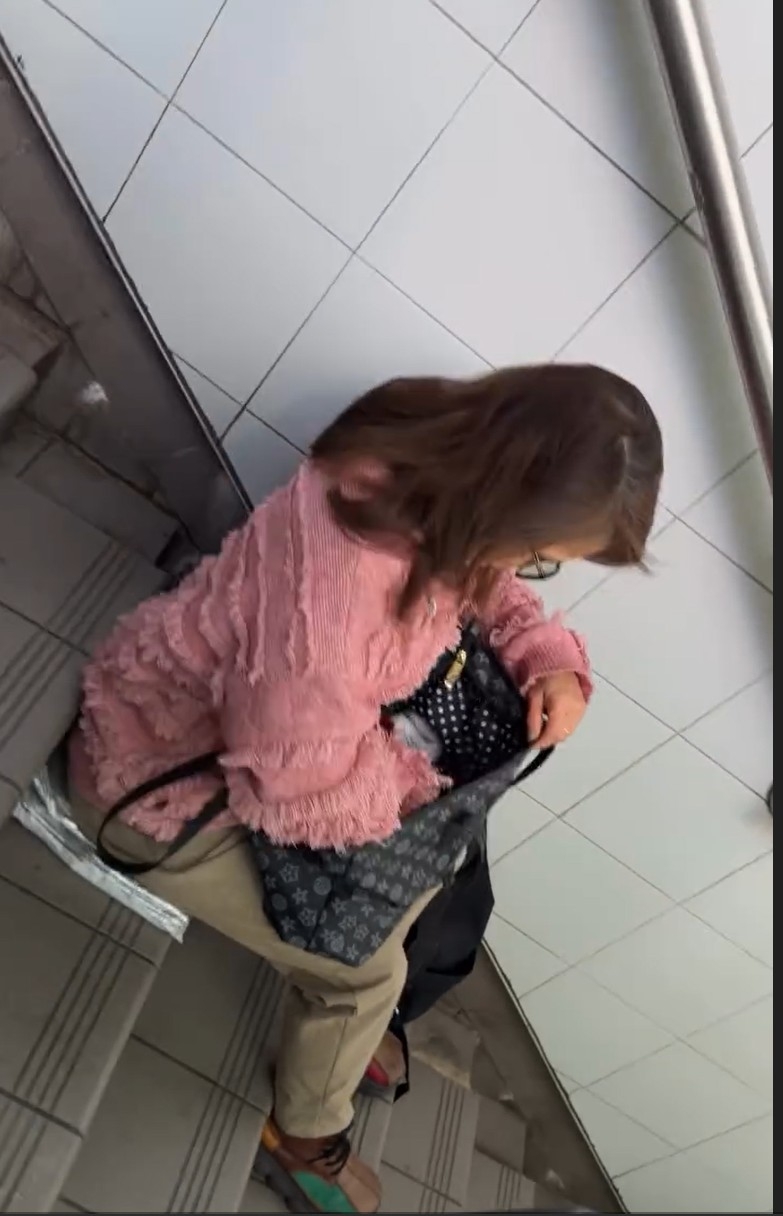 片段所見,果然有幾位婦人,席地在樓梯位坐着、等着埋位「山寨足療」。至於疑似提供服務的女士,亦有備按摩油而來,為客人進行按摩。