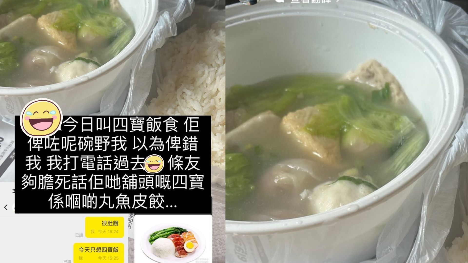 外賣中伏經歷 四寶飯驚變「四寶丸河」|網民:四寶湯飯?張相好有誤導成份