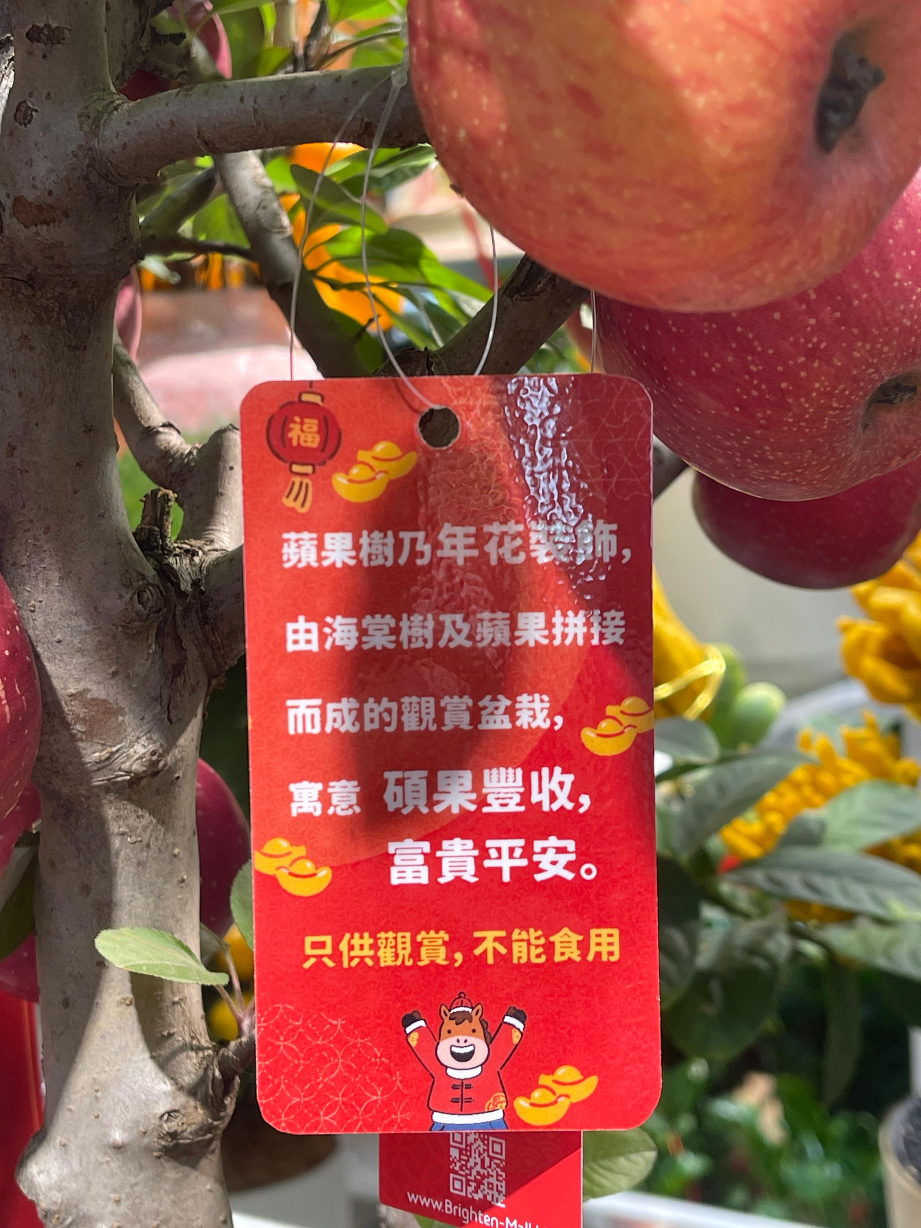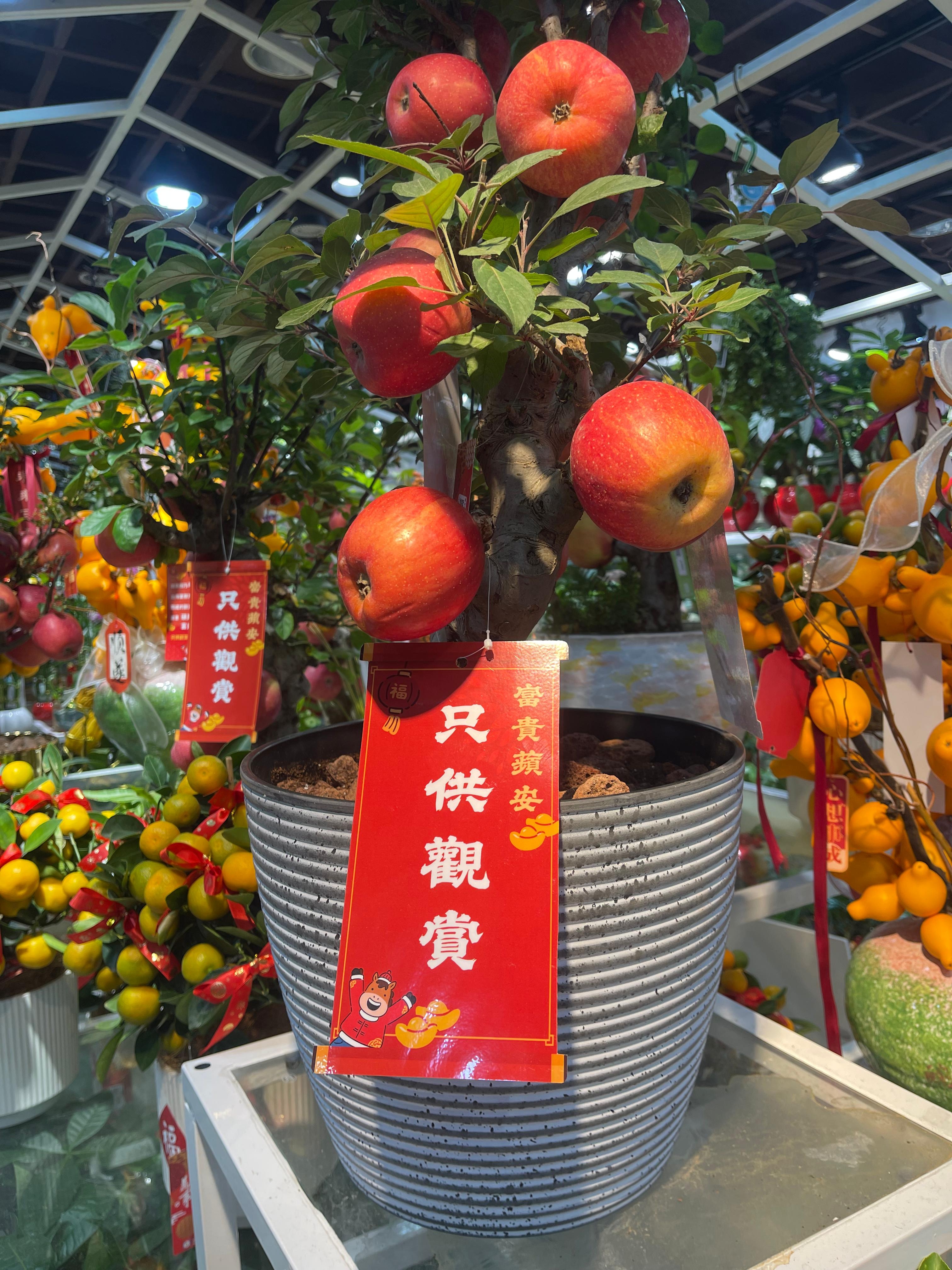 今日,《東張+》記者再到花墟某花店巡視,發現有部分蘋果盆栽,已經貼出了紅噹噹意頭告示,聲稱蘋果樹「只供觀賞」不過,仍有部分蘋果盆栽可以出售,售價由480元至1,080元不等。