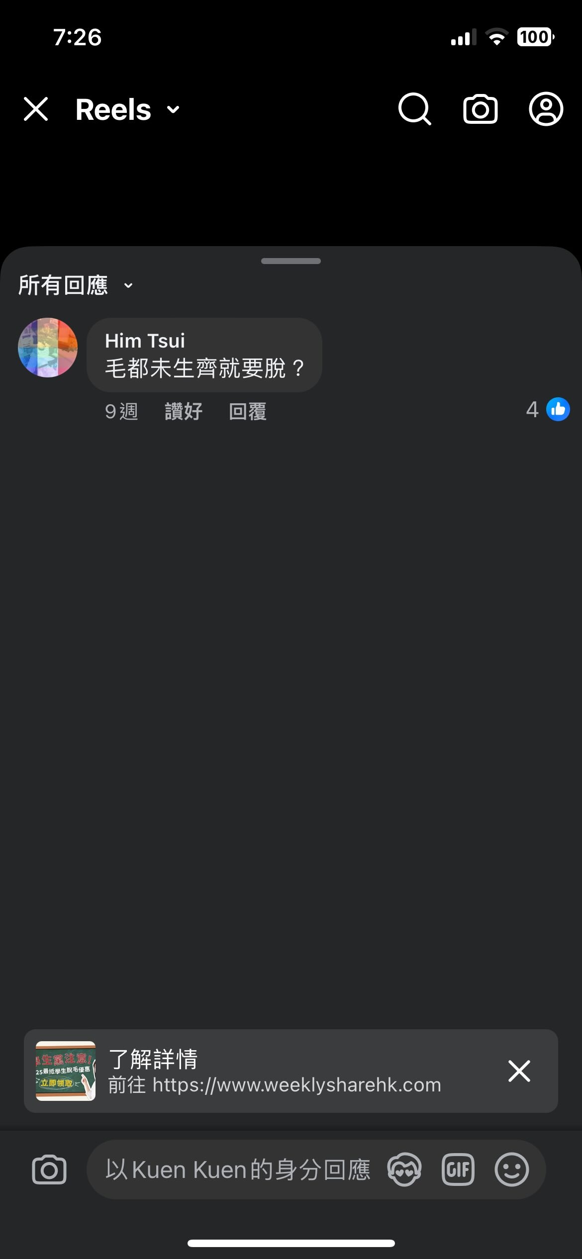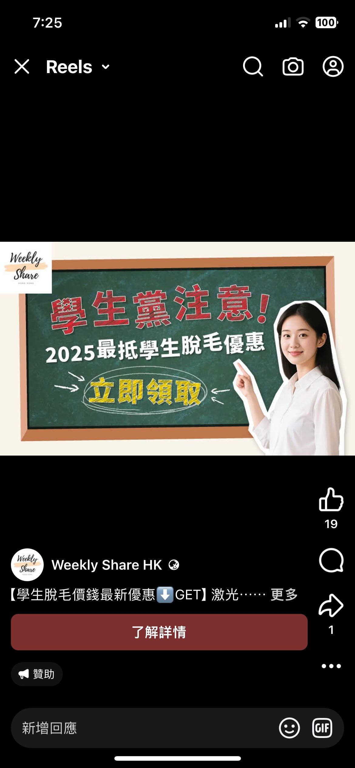 網民913_187上載圖片到社交平台threads,看圖片推斷,應該樓主被一間脫毛公司在網上硬性推脫毛優惠,更指明是「學生黨注意,最低學生脫毛優惠!」令樓主不禁反問一句:「毛都未生齊就要脫😂」