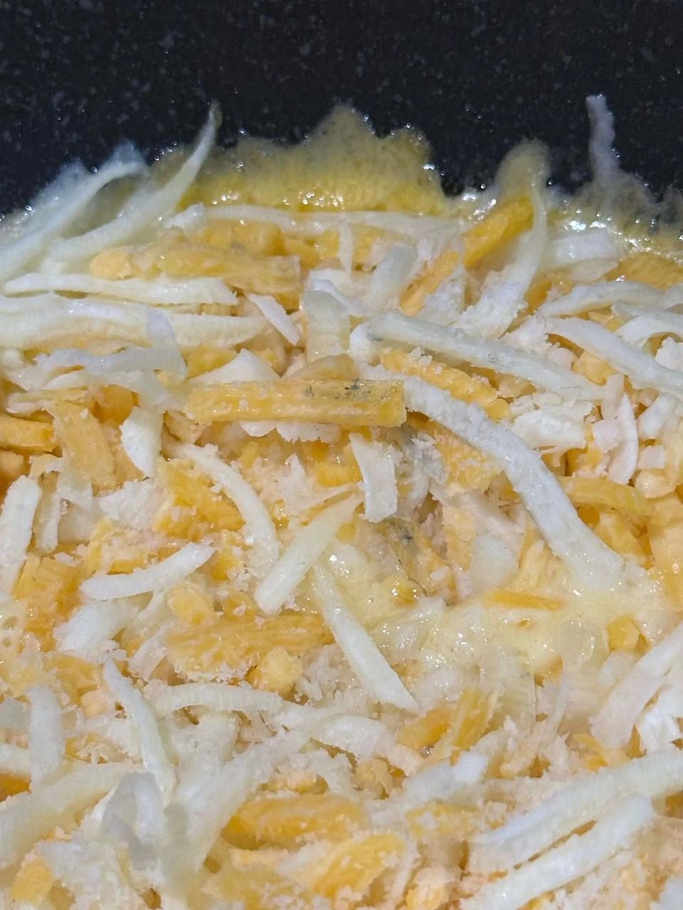 「店員話好忙,擺低兩隻羹,叫我哋自己炒啲芝士。朋友一睇,就發現匙羹發晒毛!跟住同韓國店員溝通,起初佢話幫我哋換咗啲芝士,但因為霉菌已經掂到芝士, 成個換晒先安全。 」