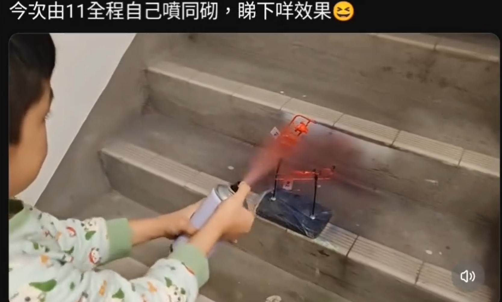 親子活動,本應是開心事。不過親子事,都要顧顧公德。今日網上流傳一段影片,片段中有一位小朋友疑似在後樓梯砌模型,噴色和上色,自己模型自己負責。不過留意返,在公眾地方沒有遮掩地塗鴉,不是太好吧。
