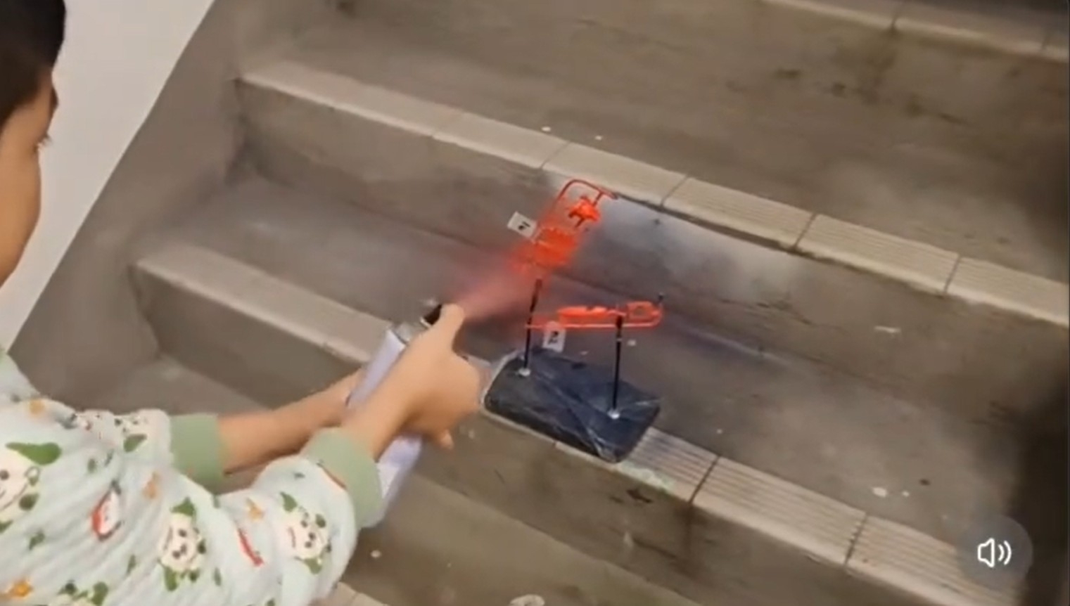 網民goring_51轉載了片段在threads「後樓梯戰士」群組,並發出帖文:「兩仔爺一齊砌模型促進父子感情,係好事嚟嘅...但去後樓梯噴油之前,補返張報紙先噴得唔得啫?」