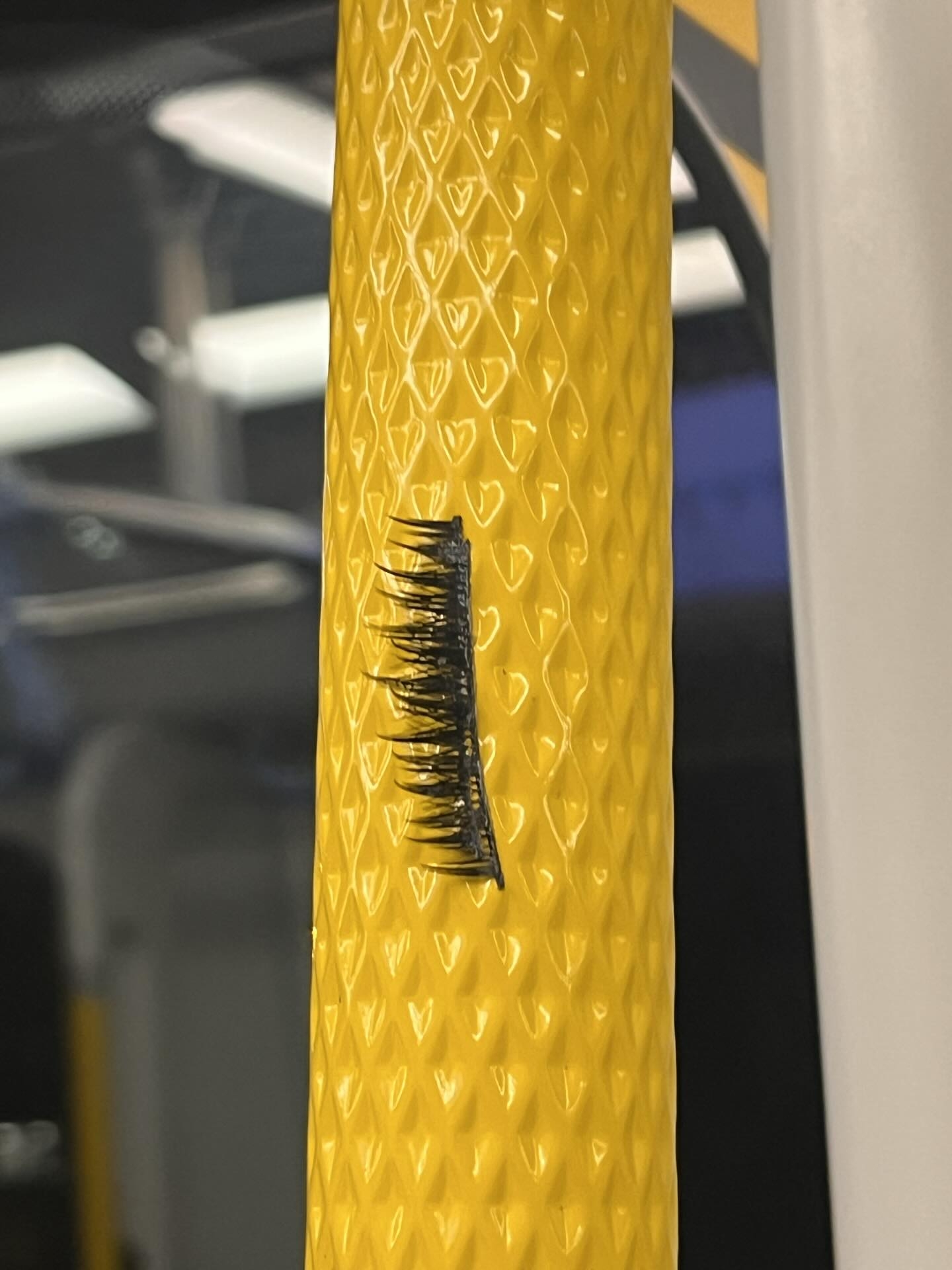 圖片所見,一條假眼睫毛出現在車廂扶手,緊緊地貼在扶手,不過,密集恐懼,毛管棟系列!