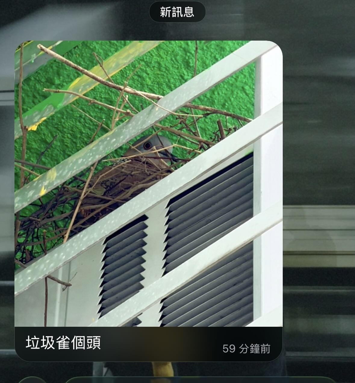 然後,樓主又上載多幾張圖片更新情況,笑指鳥巢「墜毀」時,僅得幾條樹枝,所以才稱其為「垃圾巢」。更因為該巢穴沒有任何保護性,樓主稱曾看到有藍鵲跟斑鳩媽媽打架,簡直是「零防零攻」咁話!