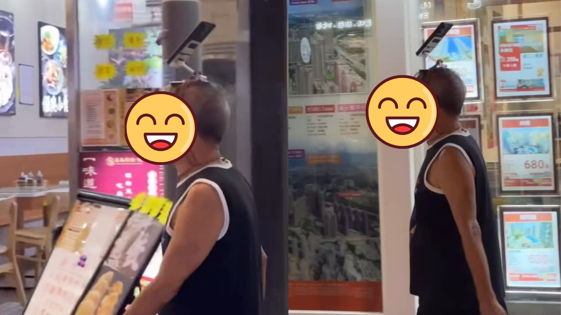 脆友derryainsworth在社交平台threads發文,簡單一句配文:「I love Yuen Long 😂🚗」所為何事呢?原來「頭頂大叔」出現了!身穿黑背心的他,用繩子將手機頂在頭上,騰出雙手自在地走路,又啱噃,兩手空空,成個人更加輕鬆自在,爽呀!