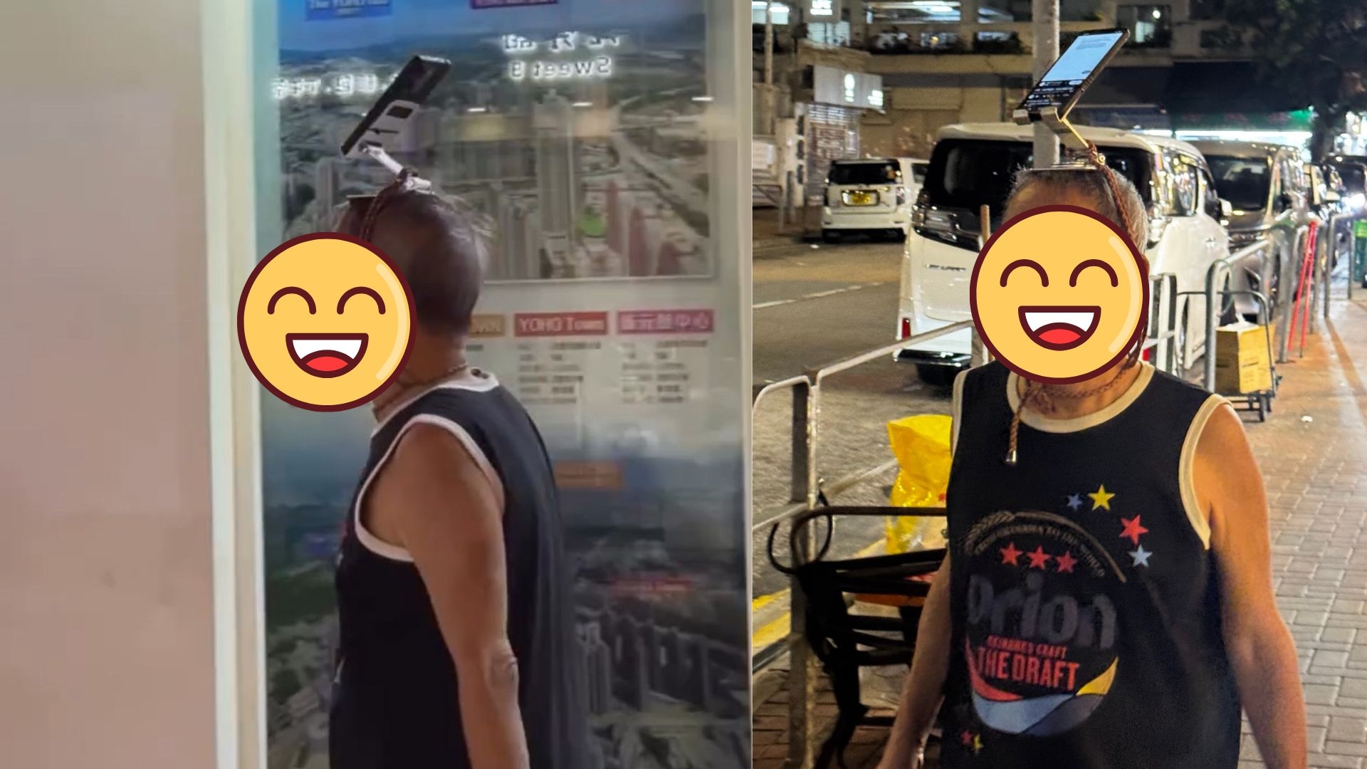 元朗奇人奇事 頭頂大叔出現頂手機|網民爆金句:高端有航拍、阿叔有行拍