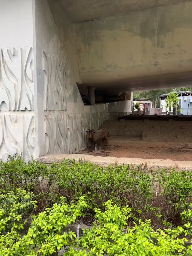 睇過睇過。片段所見,一隻黑山羊孤單地在橋底下,看似休息,但眼神又有點迷惘,是否看到人類作出的反應呢?而根據樓主分享地圖指,該處是位處天水圍天影路一帶。