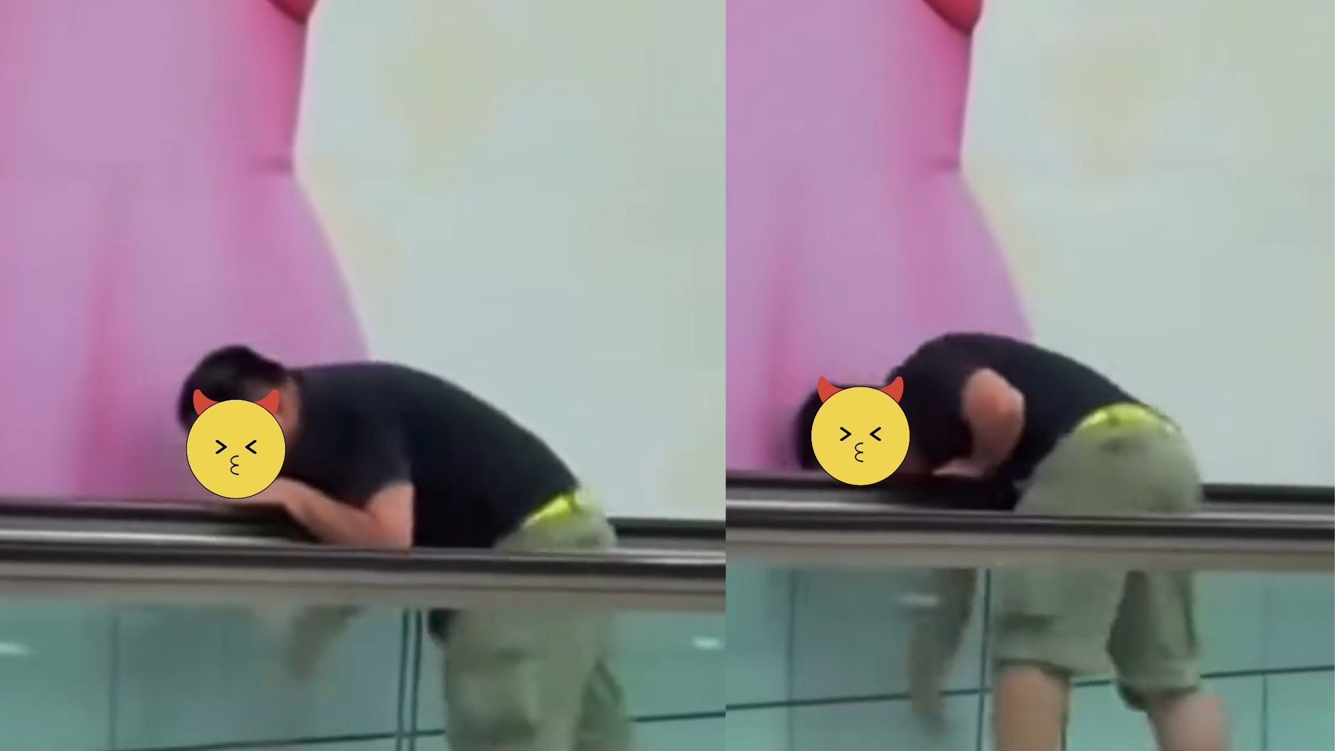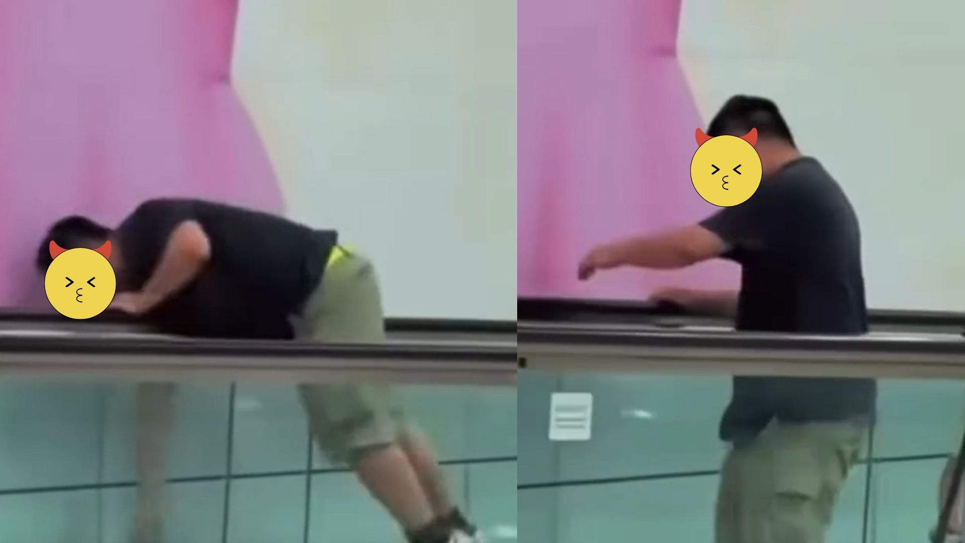 今次尷尬了!小編看片段推斷,應該是身穿黃色衫的「乖仔」不小心錯跌了電話,好爸爸不單只沒有嬲怒,還九秒九使出九牛二虎之力,在一路滑後的扶手電梯之中,反其道而行,逆流而上,試圖在電梯夾縫中,拾回屬於自己的手機寶物。