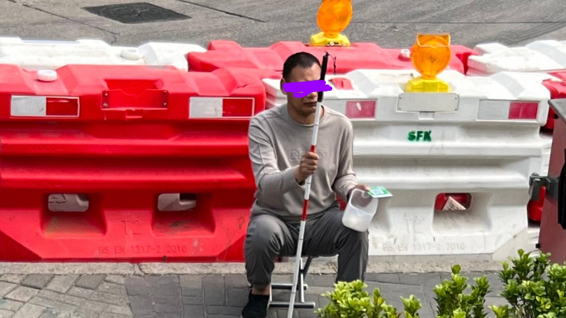 觀眾附上照片,指在今早約9時,在黃大仙廣場遇到一個用微信二維碼行乞的乞丐,並向東張報料說:「在近黃大仙廣場樓梯位置,見到一個睇唔到野的男子行乞,今次有新意,學埋大陸啲乞丐用微信二維碼行乞。」