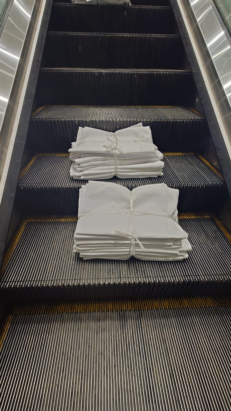 有上水街坊向東張報料,指上水有酒樓竟將食客枱布放扶手電梯運送,質疑他們的衛生狀況。