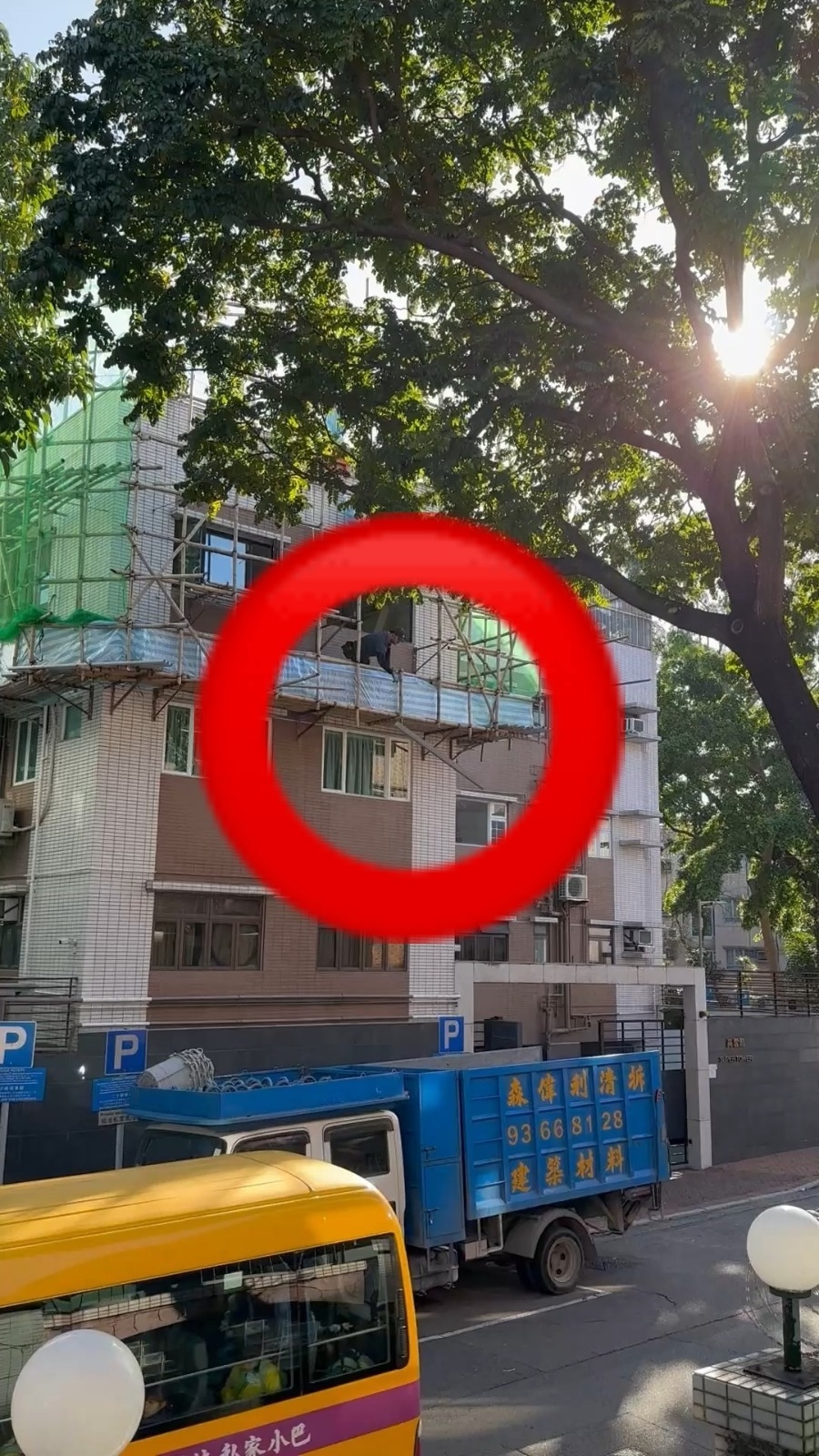 有觀眾向《東張》提供片段報料,片段可見九龍豪宅區石竹路有單位裝修期間,工人的冒險行為。