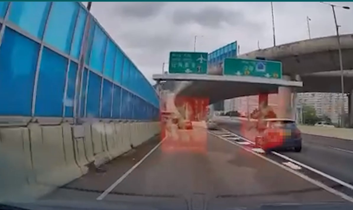 片段可見,車上的乘客也受驚,爆粗說:「睇住呀睇住呀!」另一名乘客則嘗試找出原因,問司機:「你頭先係咪閘親佢?」