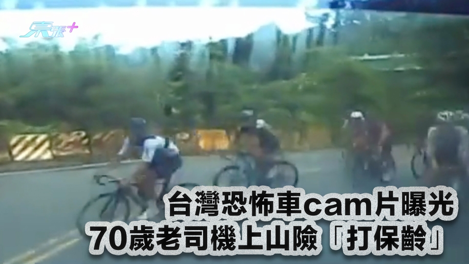 在影片中可以見到,一輛私家車沿着行車道上山,到一個轉彎位時,一大群單車手突然高速下山,嚇得70歲的私家車司機立刻收油,險些變成「打保齡」,撞向單車群。