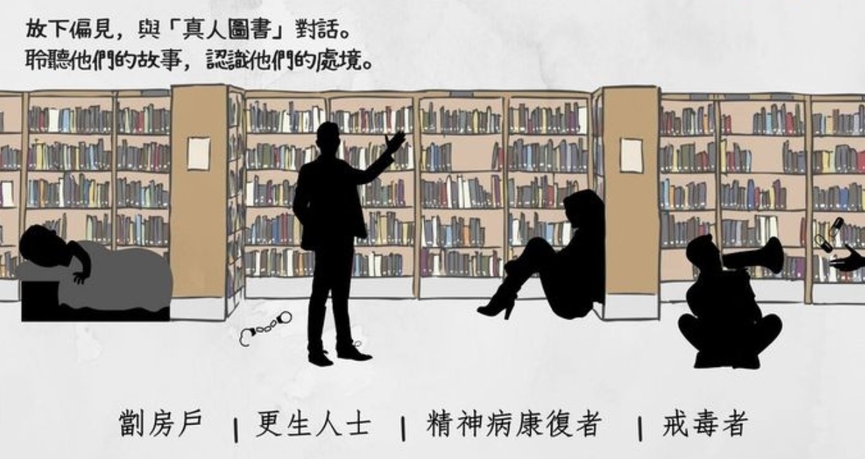 香港也有舉辦關於「更生人士」、「同性戀」「外籍家傭」等等的「真人圖書館」,希望大家透過了解別人的經歷,促進彼此的理解和包容。