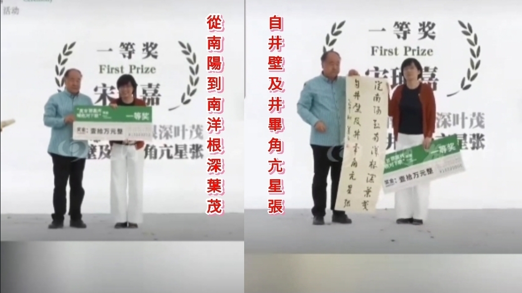 獲獎名單日前揭曉,21歲的宋珂嘉以「自井壁及井畢角亢星張」的下聯奪得一等獎,獨得10萬元(人民幣,下同)獎金。