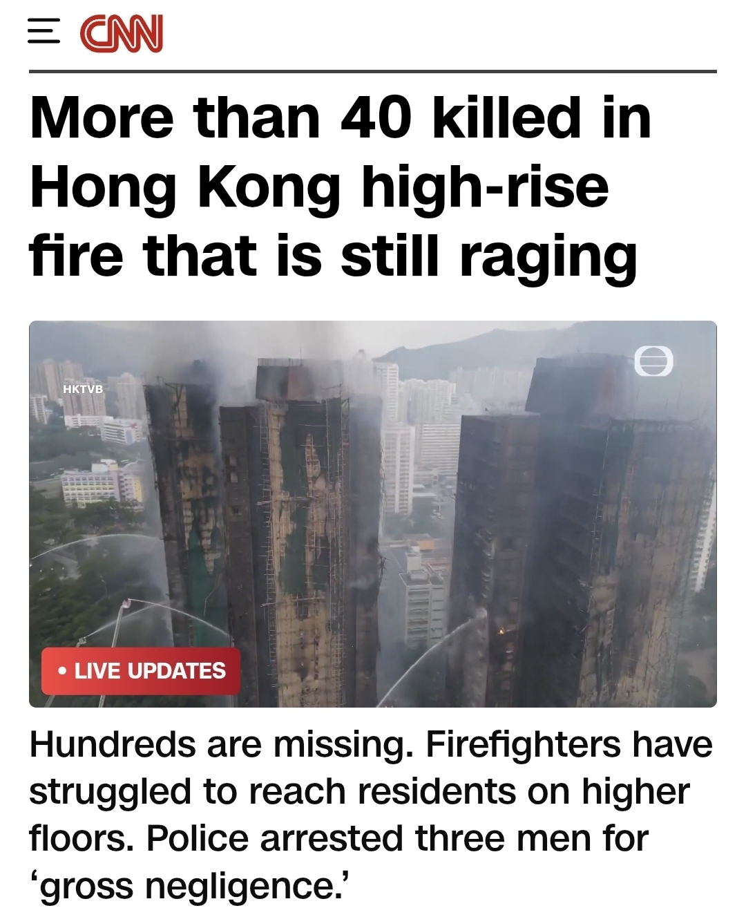 CNN頭條更引用TVB現場航拍片置頂。