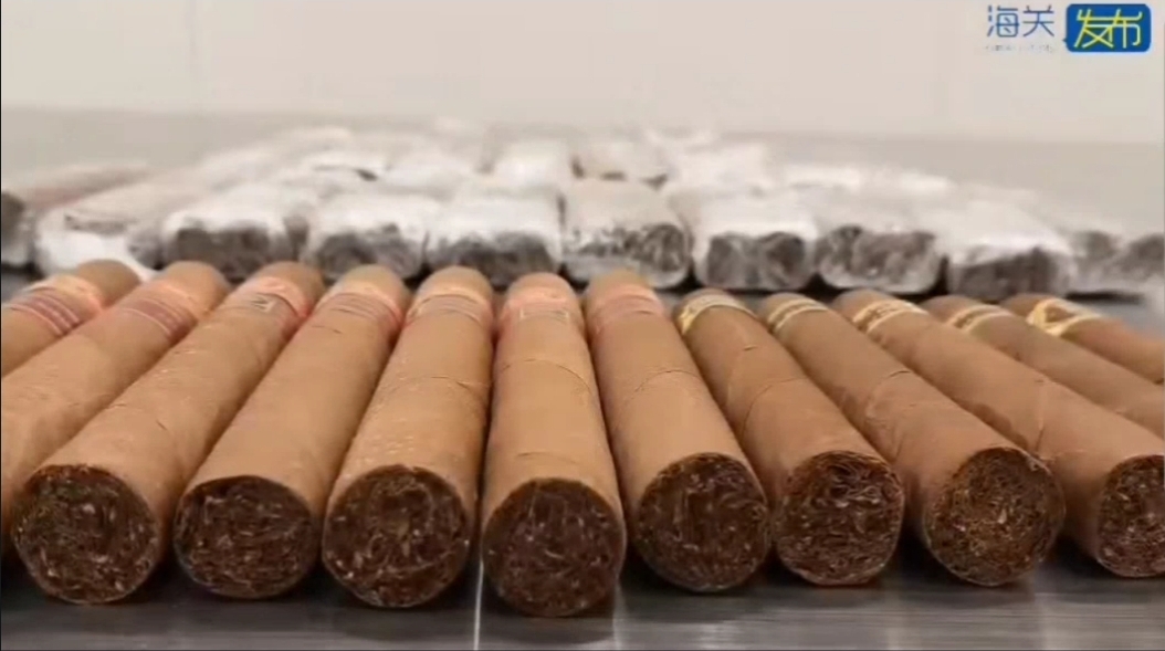 據「海關發布」通報,近日,皇崗海關查獲進境旅客藏匿48支雪茄案。皇崗海關關員在福田口岸對進境旅客及其行李物品進行監管時,發現一名男性旅客進入海關監管區未向海關申報,在經過關員身邊時佯裝低頭看手機,神態緊張,意圖快速走過海關查驗台,且其身著短褲較為臃腫,海關關員立即對其進行攔截檢查。