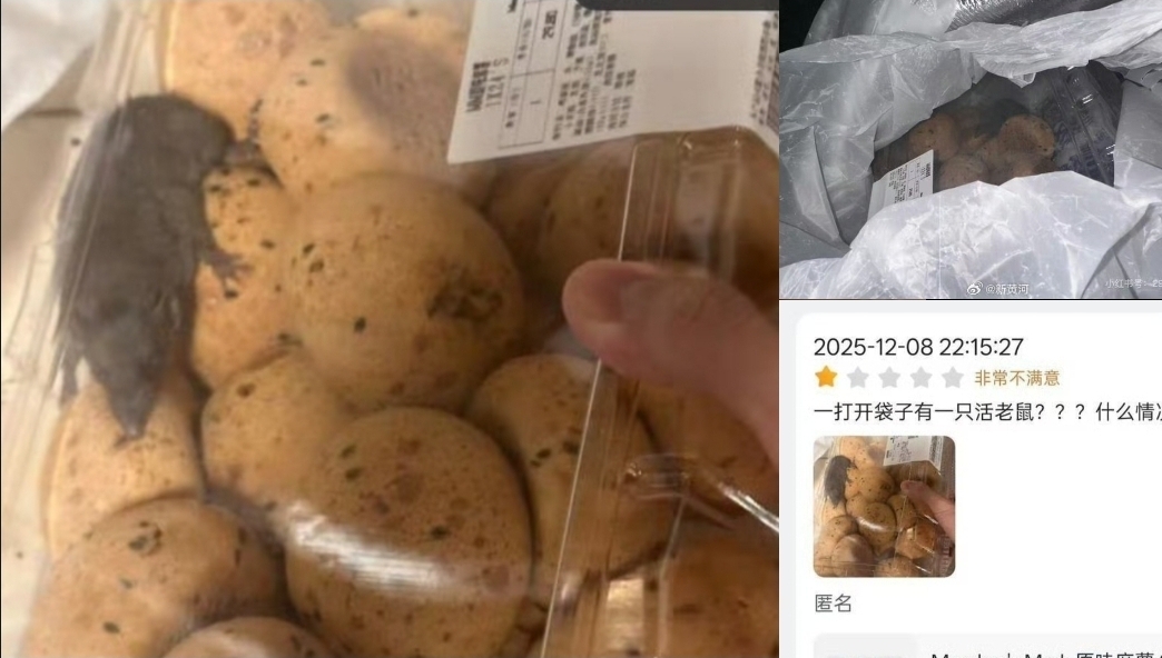 今日(9日)淩晨,深圳一名消費者曬出其日常訂單指,其於12月8日晚通過山姆App的「極速達」服務,購買了包括鮮奶、橙汁及一盒24個裝Member's Mark原味麻薯在內的商品。但當晚送達的銀色保溫袋中,除了冷鏈商品,還出現了一隻老鼠。
