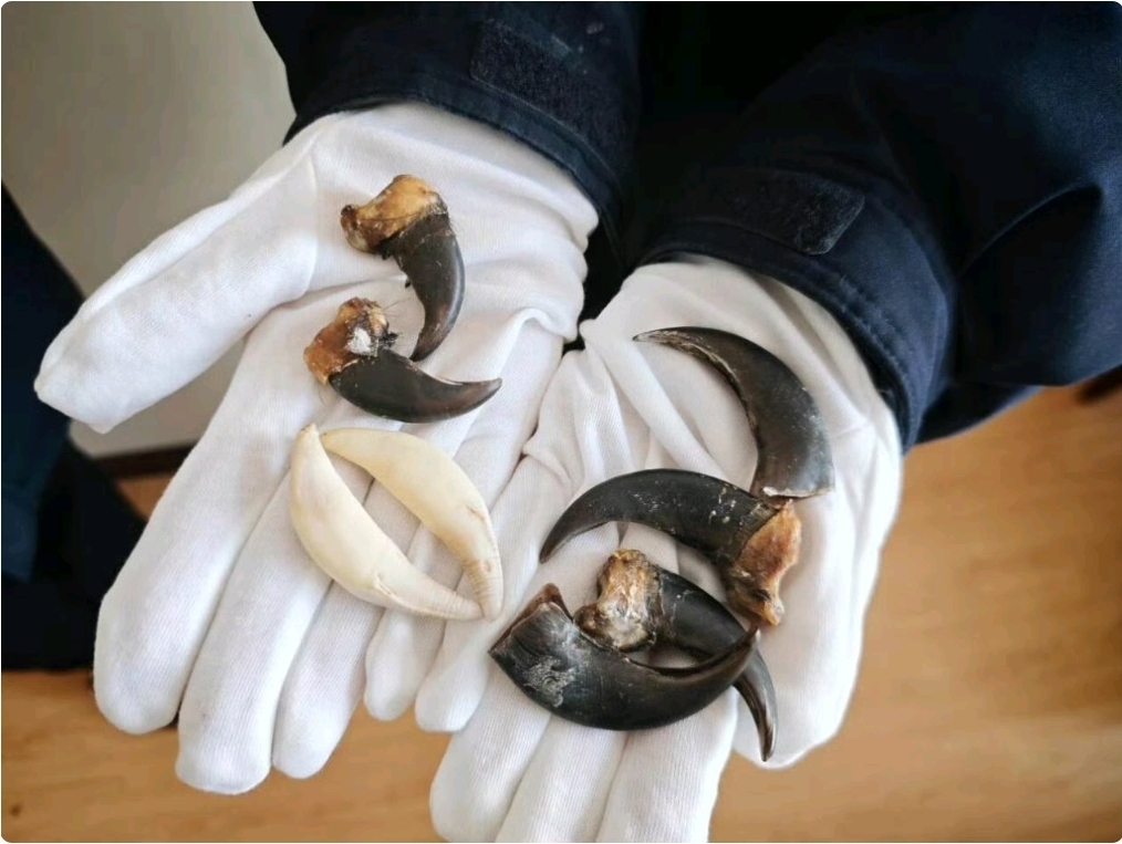 此外,12月4日,滿洲里機場海關關員在滿洲里航空口岸入境旅客通道開展行李物品監管工作時,發現機檢圖像異常。關員當即告知旅客開箱查驗,在逐層排查後,於背包夾層及衣物包裹中,查獲2顆動物牙齒及6個疑似動物趾甲,該旅客當場承認為狼牙和熊趾甲,企圖通過藏匿方式逃避監管、攜帶入境。