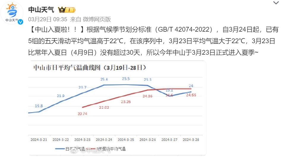 據@中山天氣,今年中山於3月23日正式進入夏季。