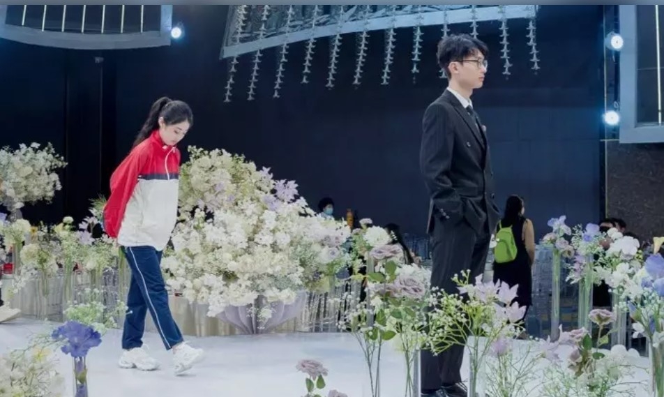 新郎周家樂與新娘邵瑜,10年前在膠州市第三中學認識,兩人的緣分從高二文理分班時開始。邵瑜回憶,每天晚上放學後,周家樂都會繞路送她回家,風雨無阻。一次下雨天,兩人都沒有帶雨傘,周家樂毅然脫下外套給她披上,這讓她十分感動。